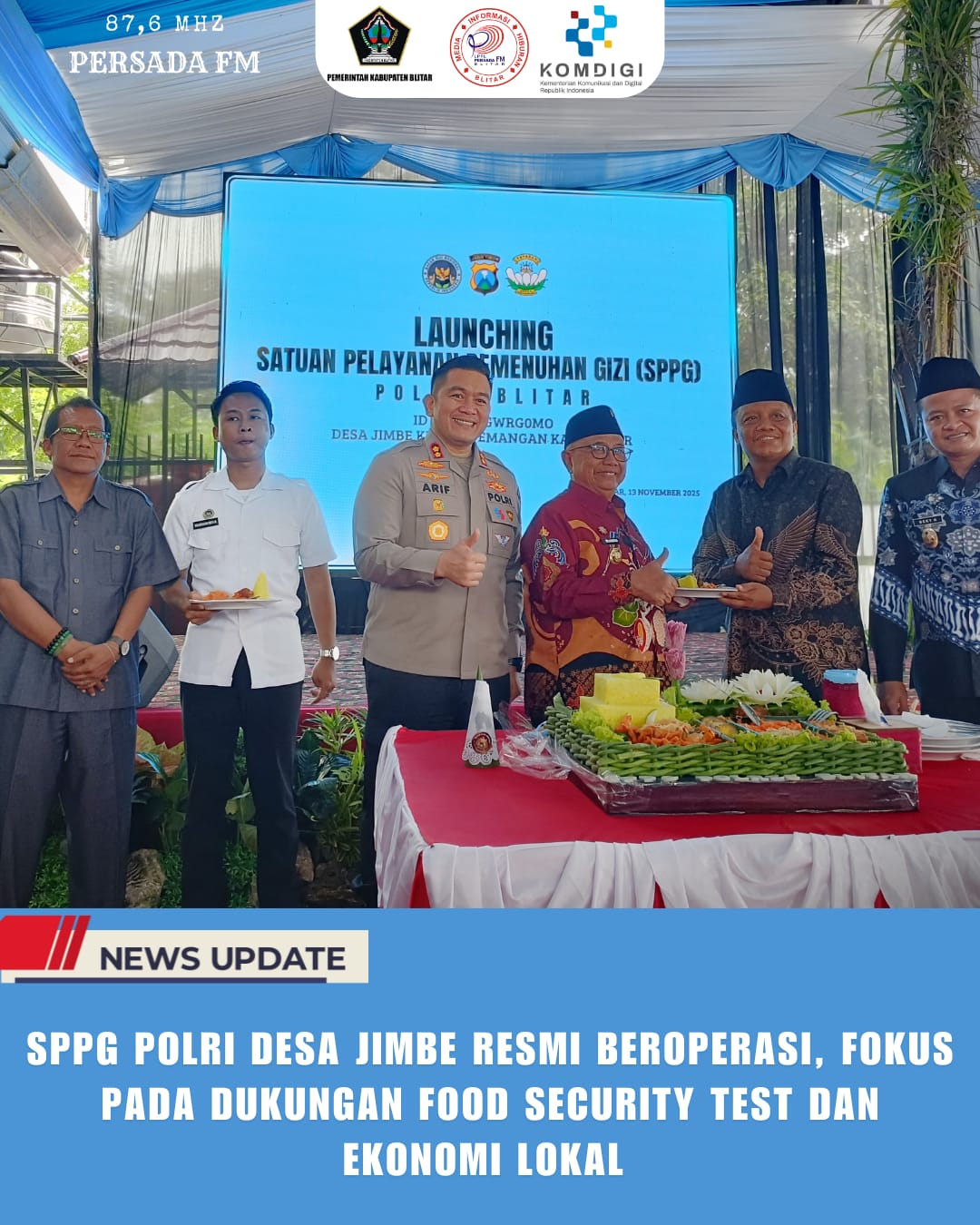 PersadaFM – Satuan Pelayanan Pemenuhan Gizi (SPPG) Polri resmi beroperasi di Desa Jimbe, Kecamatan Kademangan, Kabupaten Blitar, Kamis (13/11/2025).