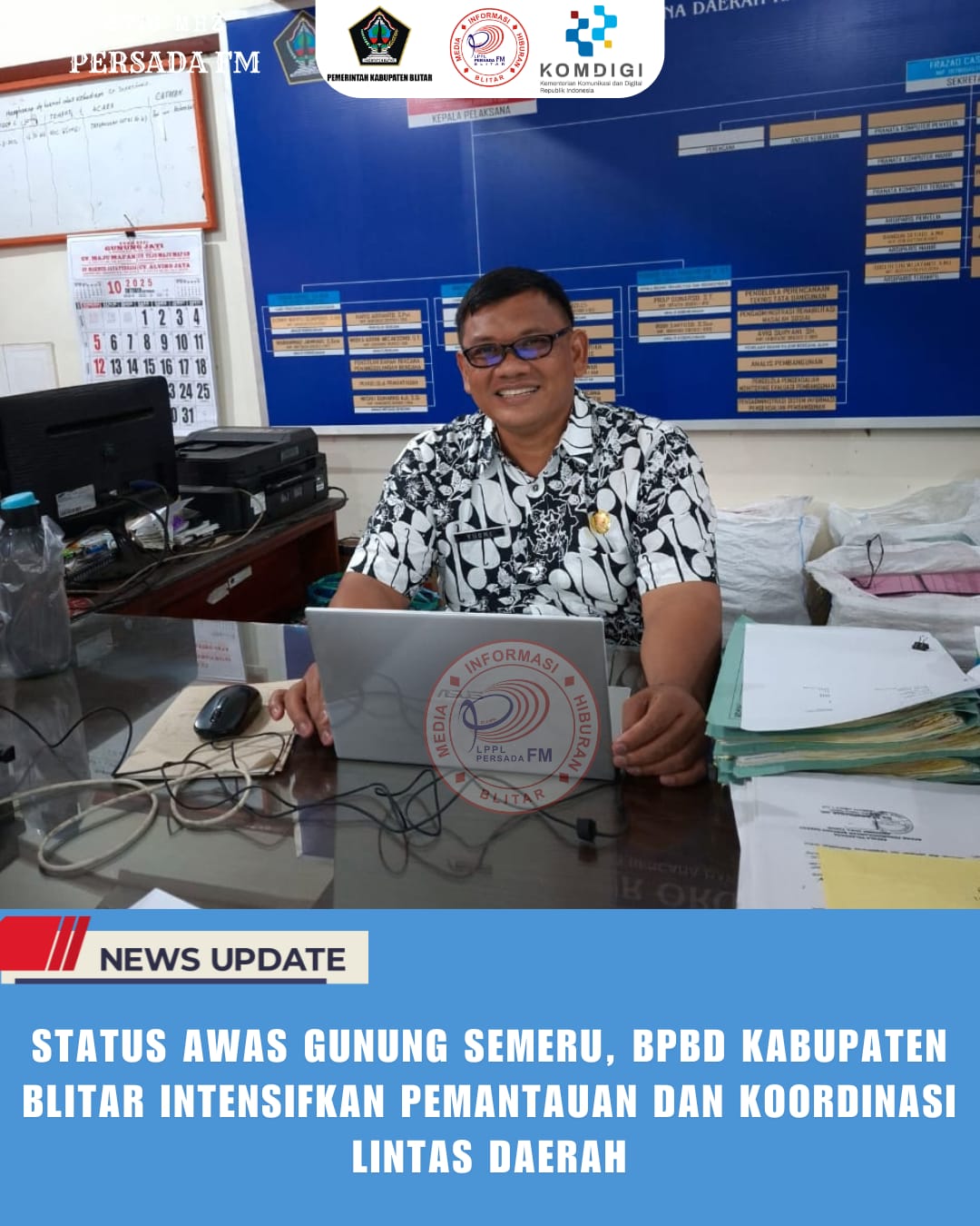 PersadaFM – Gunung Semeru mengalami peningkatan aktivitas pada Rabu (19/11) sore dan statusnya dinaikkan menjadi Level IV (Awas). Menyusul kondisi tersebut, BPBD Kabupaten Blitar memperketat pemantauan terhadap potensi dampak erupsi, terutama kemungkinan terbawanya abu vulkanik ke wilayah Blitar.