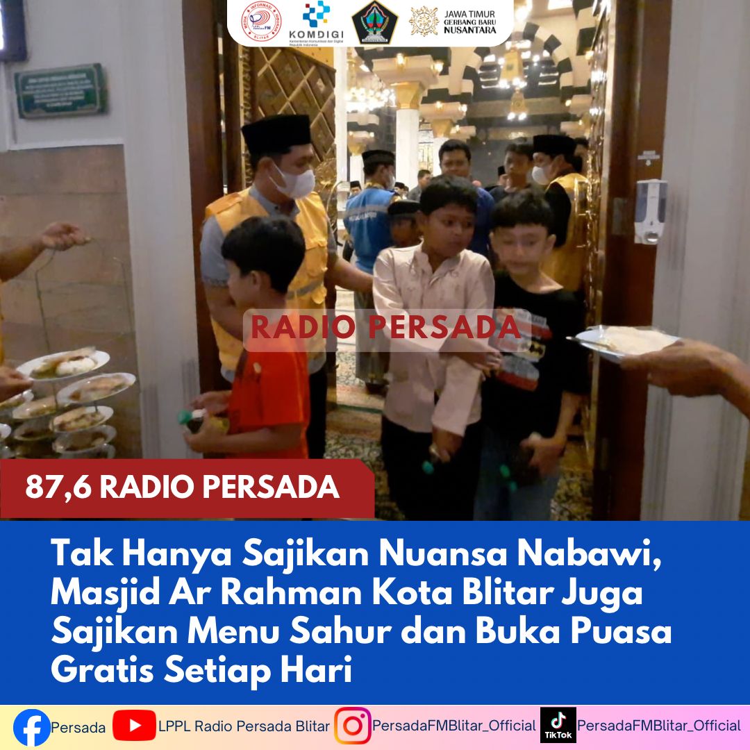 PersadaFM – Puluhan panitia sibuk menata ribuan piring berisi lauk dan sayur di serambi Masjid Ar Rahman, Kota Blitar setiap sore. Aroma masakan khas Ramadan menguar kuat, terutama selama bulan suci Ramadan 2026.