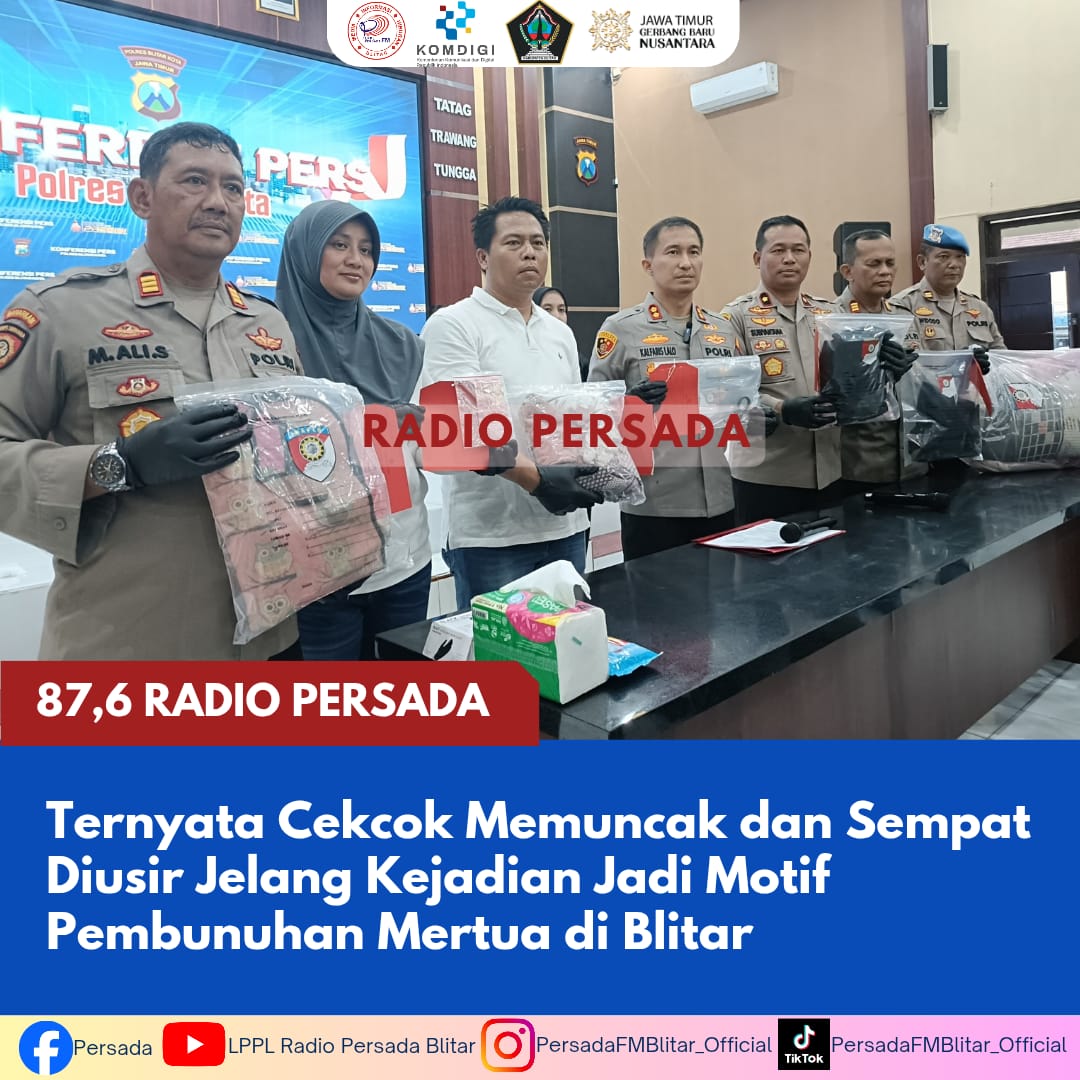 PersadaFM — Polisi mengungkap motif pembunuhan yang terjadi di Dusun Setinggil, Desa Gandekan, Kecamatan Wonodadi, Kabupaten Blitar. Korban diketahui merupakan mertua, sedangkan tersangka adalah menantunya sendiri. Hasil penyidikan menyimpulkan bahwa sakit hati akibat sering dicaci maki, cekcok yang memuncak, serta pengusiran jelang kejadian menjadi pemicu utama peristiwa tersebut.