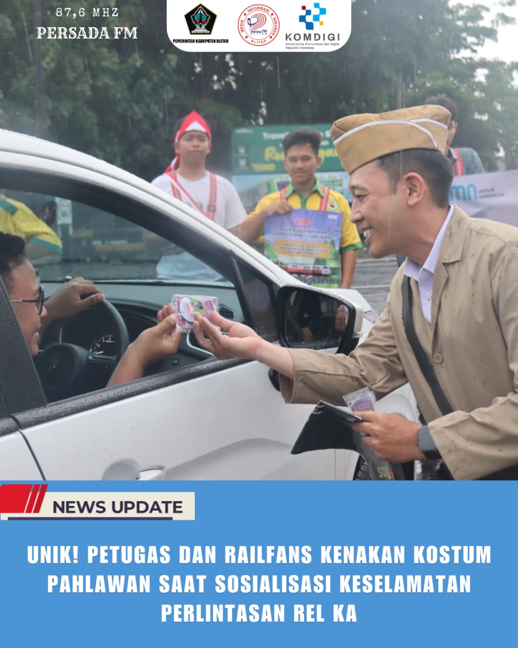 PersadaFM – Suasana berbeda tampak di perlintasan sebidang JPL Nomor 138, Madiun, Senin pagi. Petugas PT Kereta Api Indonesia (Persero) Daop 7 Madiun bersama komunitas pencinta kereta api Pecel +63 Madiun tampil dengan kostum pahlawan nasional saat melakukan sosialisasi keselamatan perjalanan kereta api.