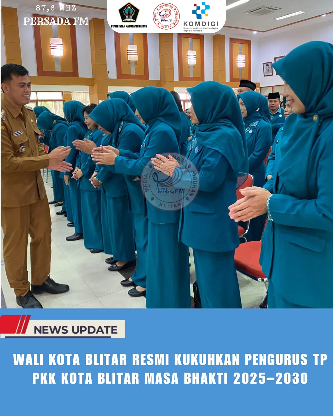 PersadaFM – Wali Kota Blitar, Syauqul Muhibbin, secara resmi mengukuhkan Pengurus Tim Penggerak Pemberdayaan dan Kesejahteraan Keluarga (TP PKK) Kota Blitar Masa Bakti 2025–2030. Prosesi pengukuhan berlangsung di Balai Kota Blitar, Senin (24/11).