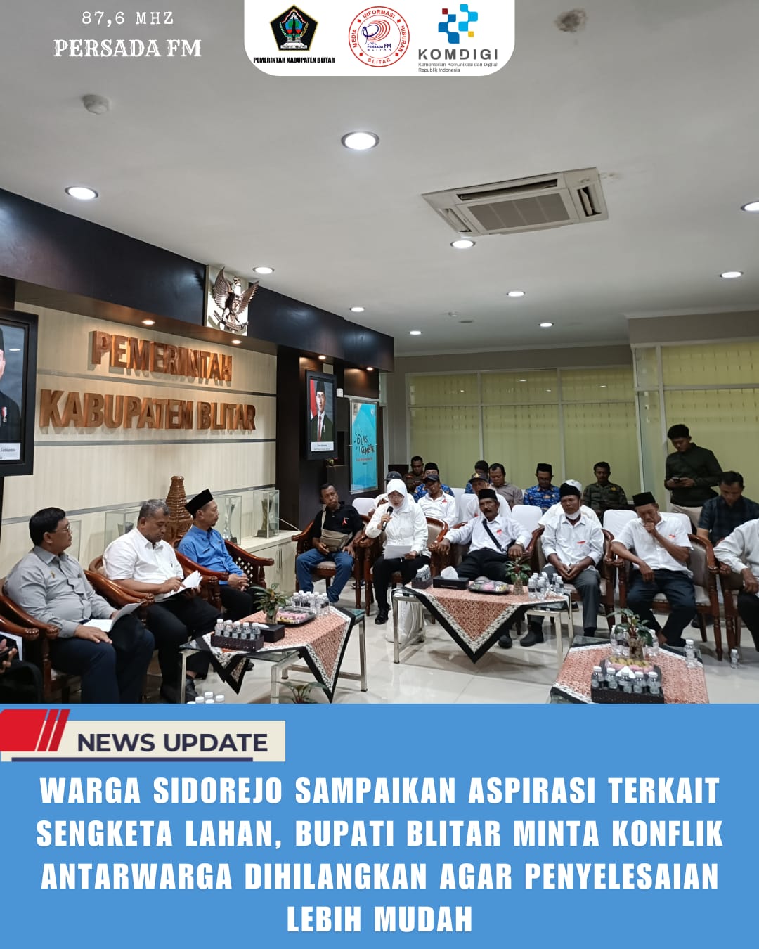 PersadaFM — Sejumlah warga Desa Sidorejo, Kecamatan Doko, Kabupaten Blitar, Selasa (28/10/2025), menyampaikan aspirasi terkait konflik lahan Perkebunan Cengkeh Branggah Banaran di depan Kantor Bupati Blitar. Aksi yang berlangsung damai dan tertib tersebut diakhiri dengan audiensi antara perwakilan warga dan Bupati Blitar, Rijanto.
